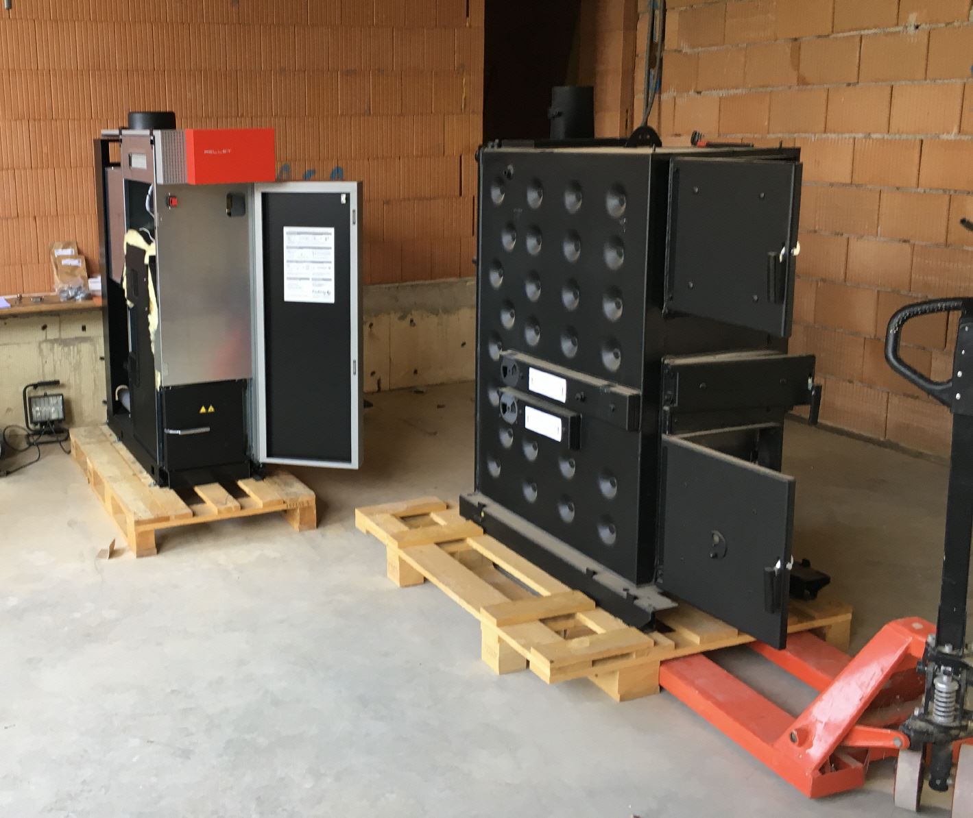 Stückholz- Pellets Kombi Kessel zur Beheizung von zwei Wohneinheiten (Alt- und Neubau).