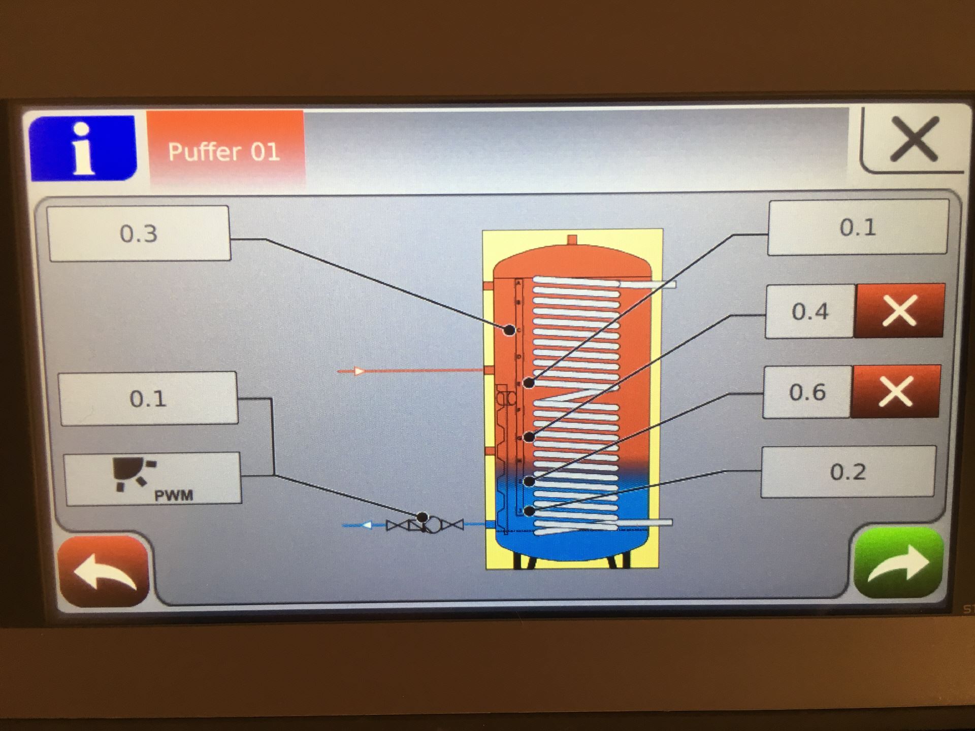 Pufferspeicher, Kombi- Pufferspeicher zur Warmwasserbereitung und Solareinbindung, drei Heizkreise (Heizkörper Altbau, Fußbodenheizung Neubau, Handtuchheizkörper Bäder)